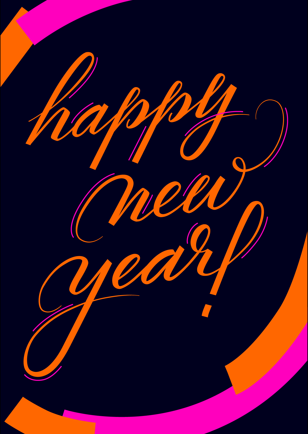 I created a New Year’s card using a brush pen. Then I scanned it and finished the project in Adobe Illustrator.