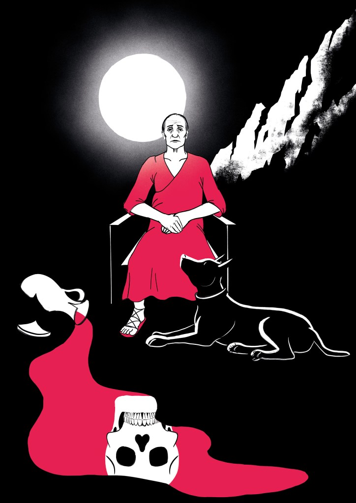Illustrations were created in Adobe Photoshop. I have used markers and contrasting colors, because they suit dark, expressive climate of the novel. Bright red was chosen because it represents blood, love and passion, while green is complimentary color.