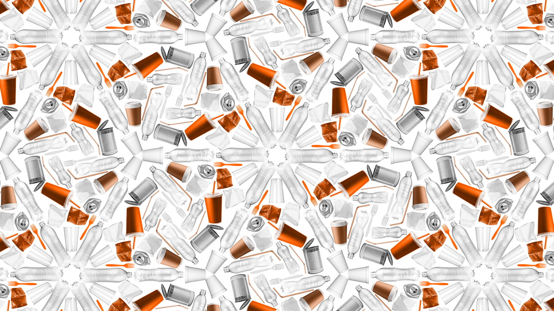 The repeatability of the elements illustrates the idea of zero-waste movement and re-use of the same items, as well as the multitude of products produced as a result of a consumer lifestyle.
