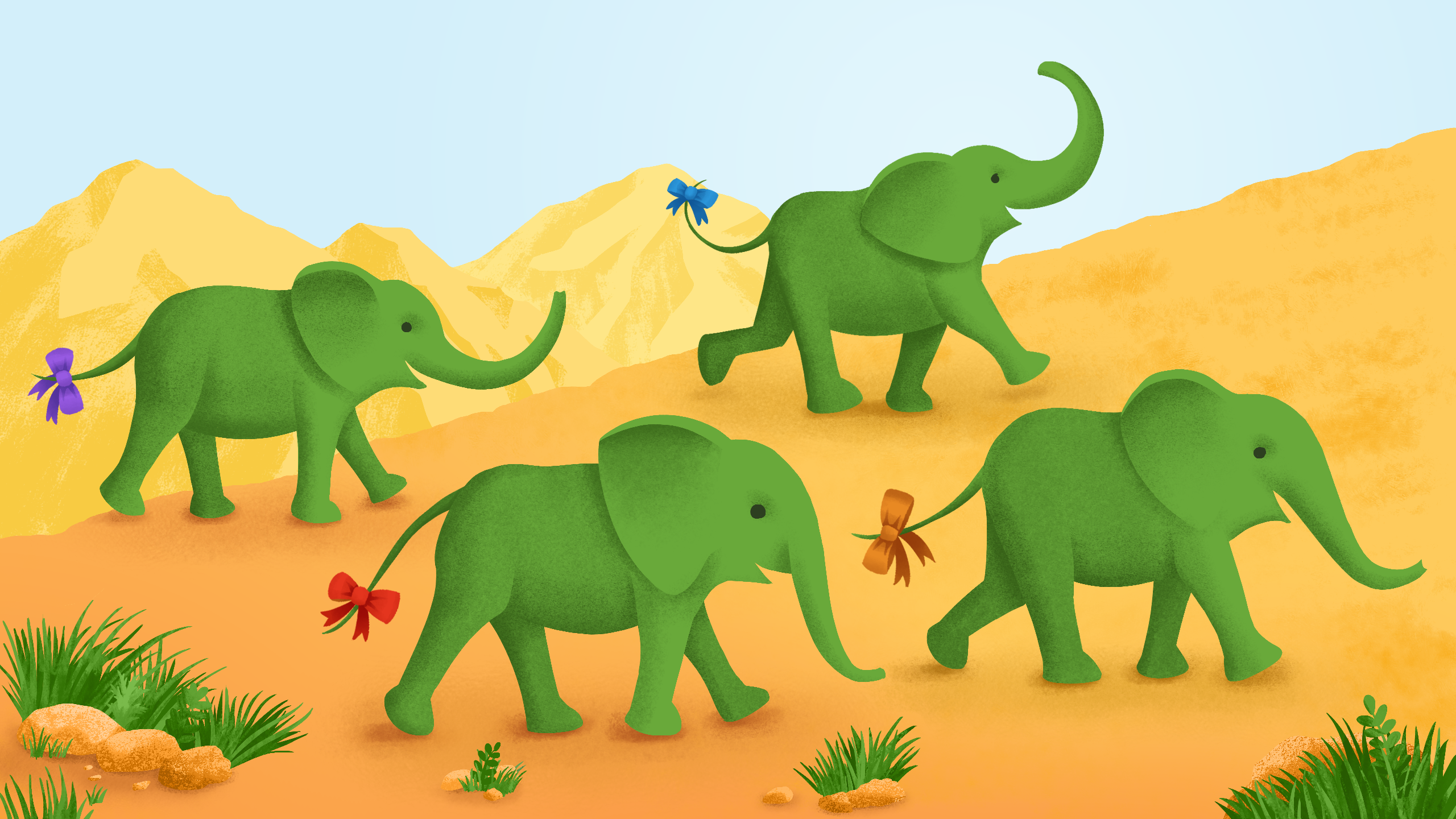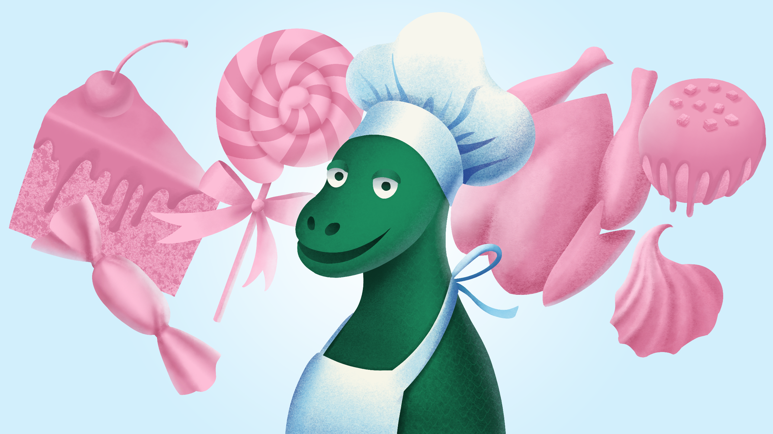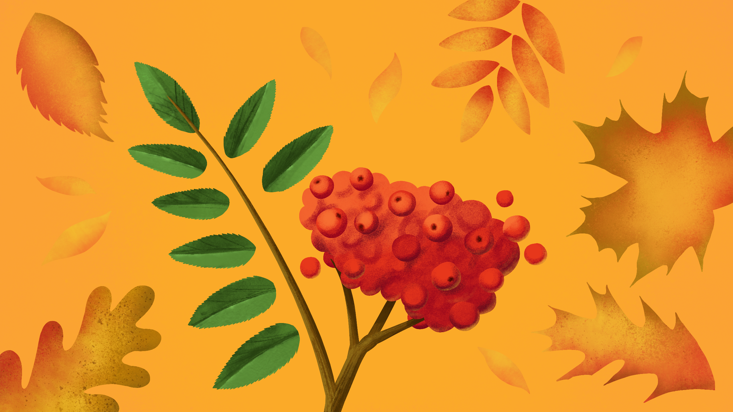 Each of the illustrations is inspired by the text of the songs, for example “Kucharz” (Cook) shows the dragon Telesfor in a chef’s outfit, and in the background the elements mentioned in the piece: a piece of cake, candy, lollipop, hen, donut and meringue. In the illustration for “Jarzębina” (Rowan tree) I drew a branch of the title tree surrounded by autumn leaves, and “Cztery słonie” (Four Elephants) depicts the eponymous elephants with bows on their tails while wandering through the mountains.