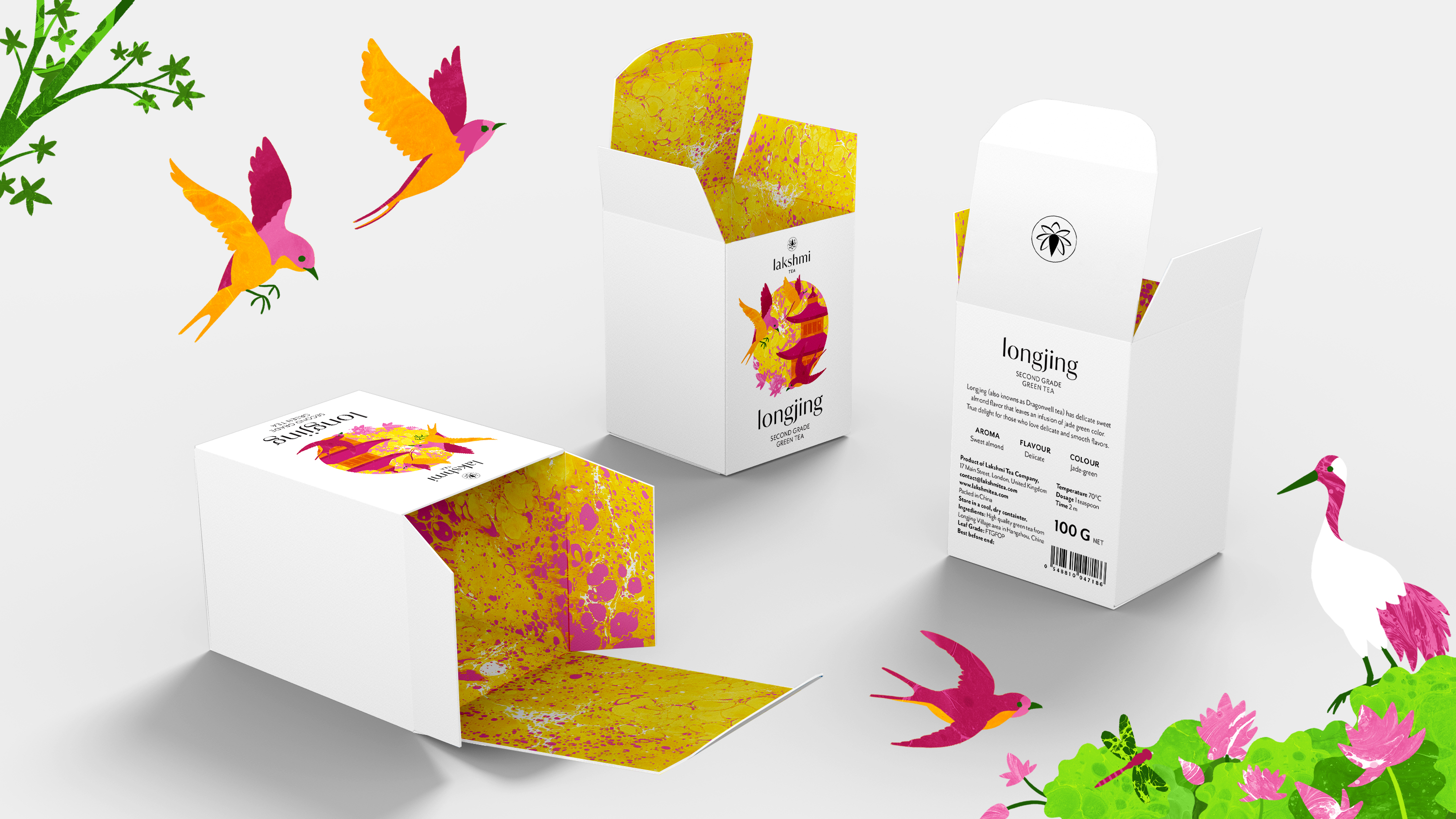 The colours and illustrations refer to the fauna and flora of the region they come from, i.e. Ceylon from Sri Lanka, Longjing – China, Darjeeling – India.