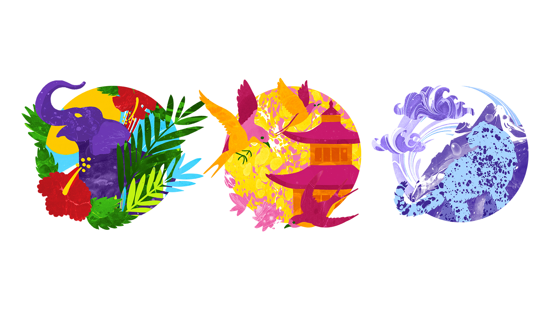 First, I offered the client moodboards with three different directions in which we could go. Then I made sketches for all the pieces. I finished the illustrations in Adobe Photoshop.