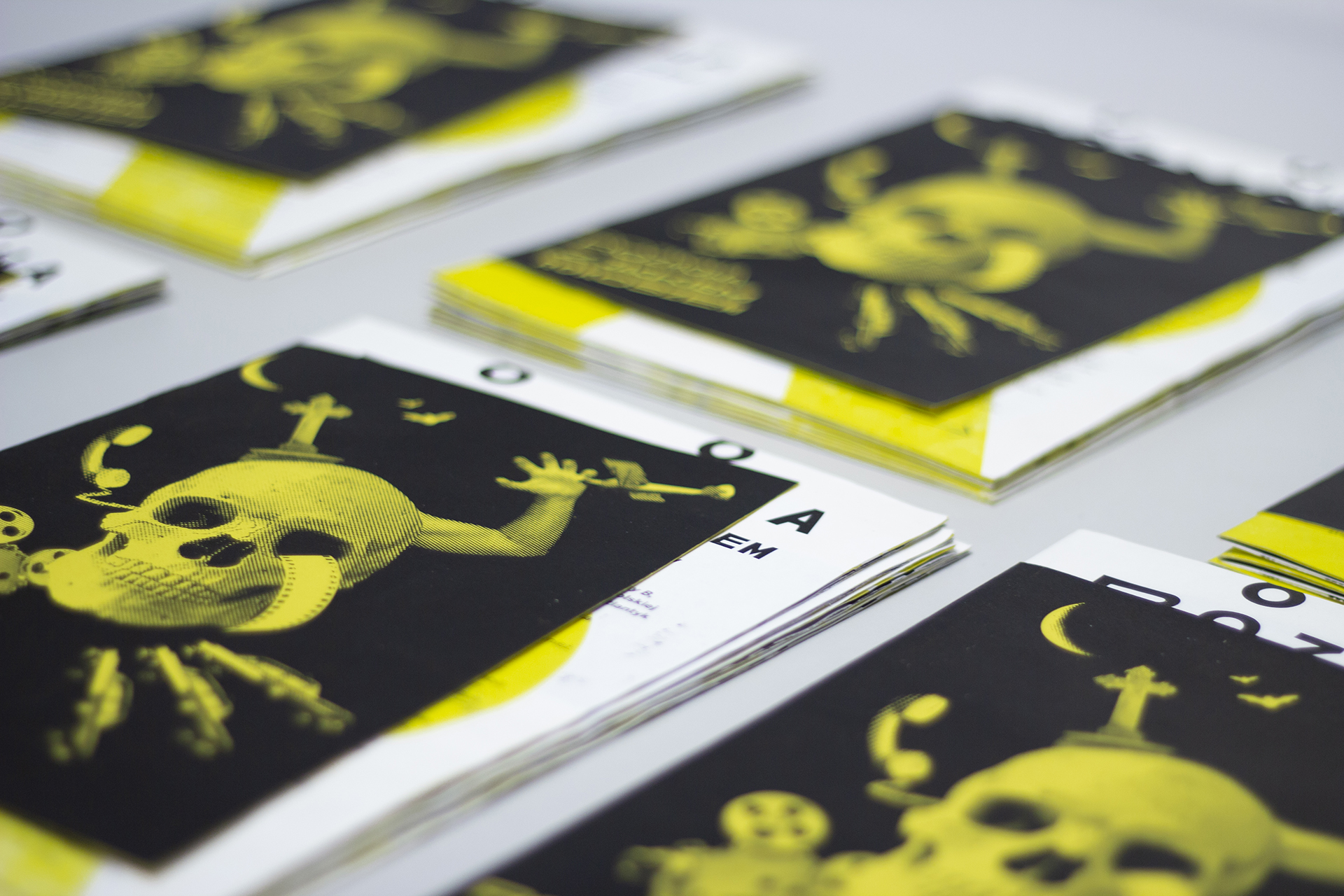 What makes this project unique is screen printing technique, original font, aesthetics of error and randomness — there is no single fixed version of the logo, each print is different, and the zine cover is stapled each time at a different angle.
