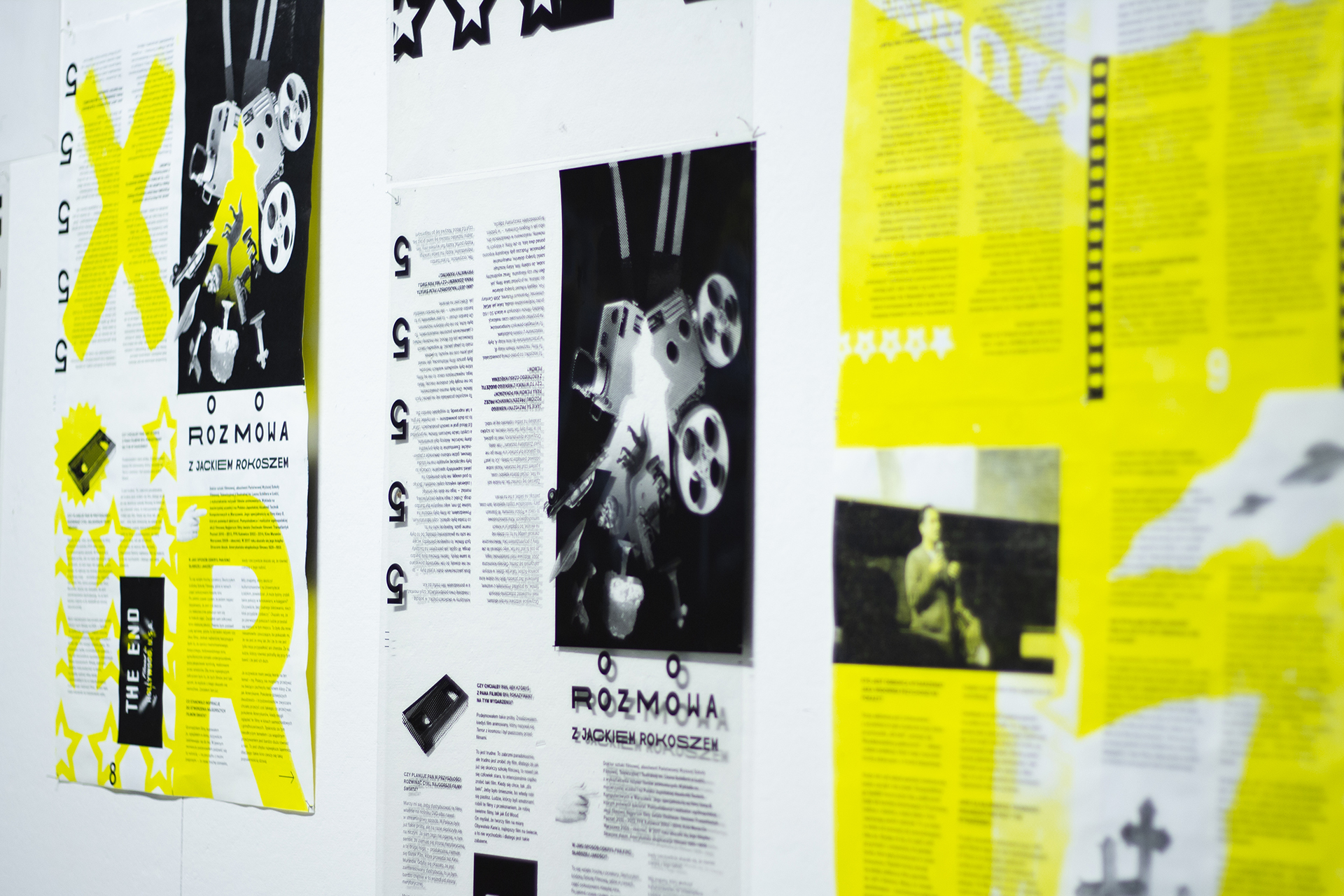 Inspired by the punk aesthetics, I gave up the uniform layout, yet the posters are consistent thanks to the color scheme, typography and the use of fixed graphic elements such as raster, black and white photos and torn paper.